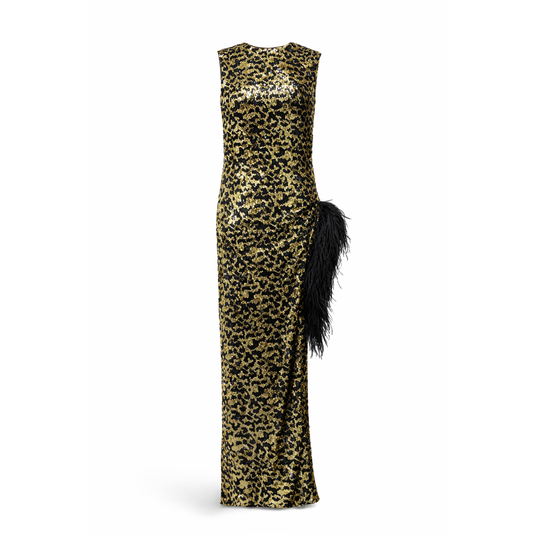Leopard Sequin Dress with Feather Detail