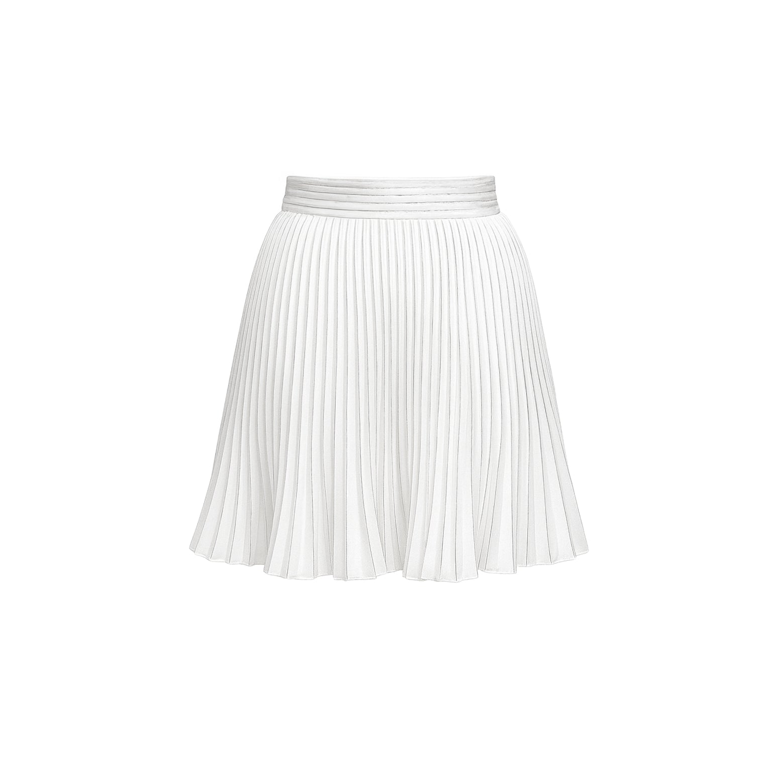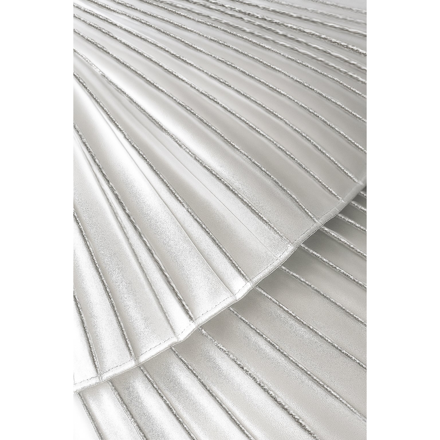 Cut in satin plissé, this pleated mini skirt is hand-finished with silver foil along the edges, for a subtle glimmer designed to catch the light with every step. The flared silhouette is anchored by an interior fitted skirt, offering coverage without sacrificing ease of movement.