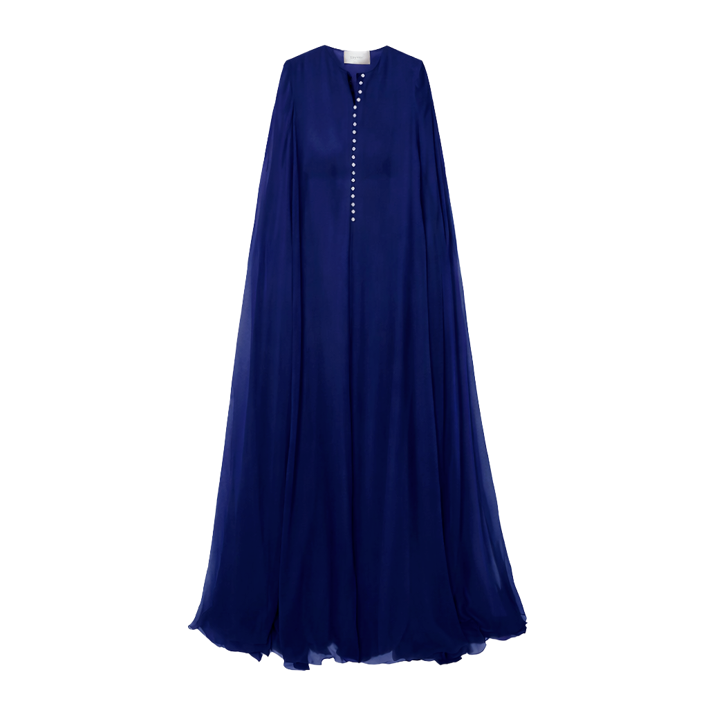 Swarovski Crystal-Embellished Sky Blue Plissé-Lamé Gown