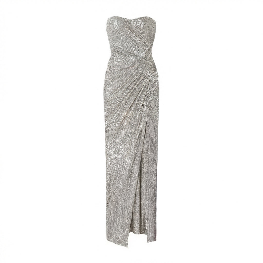 Wrap-Effect Layered Pleated Lamé Maxi Skirt